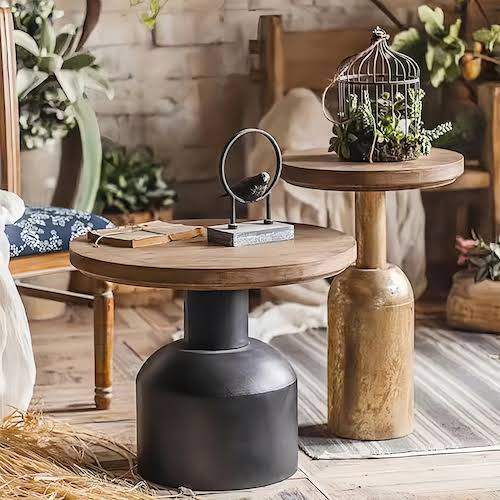 Perfect for living rooms, bedrooms, balconies, hotels, cafes, guesthouses, and boutiques, it combines **cedar wood** and **metal** for a stylish and functional centerpiece. Elevate your décor with this standout round coffee table that exudes timeless charm and durability.